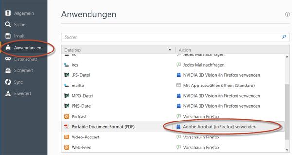 So überprüfen Sie, ob Firefox für die Verwendung von Adobe Reader richtig konfiguriert ist: